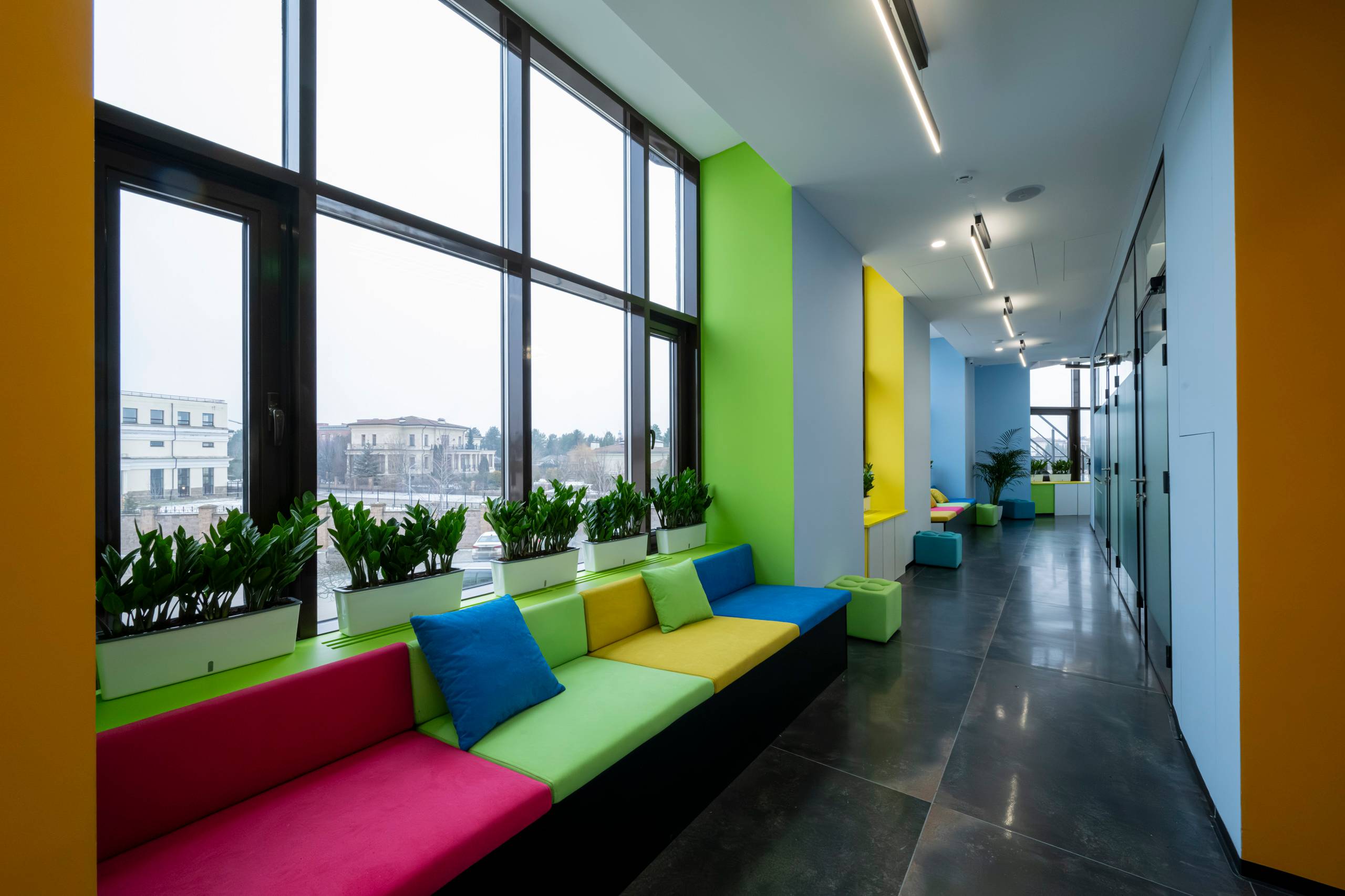 Клиника устроена так, чтобы визит был комфортным для всех. На этажах находятся кабинеты для взрослых и детские кабинеты, а рядом — игровая зона, где ребёнок может провести время до или после приёма. Это помогает семье приходить вместе и не разрывать расписание на отдельные визиты.
