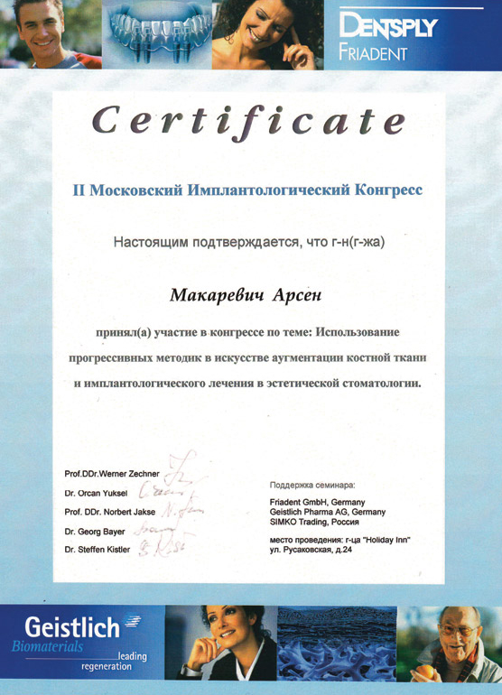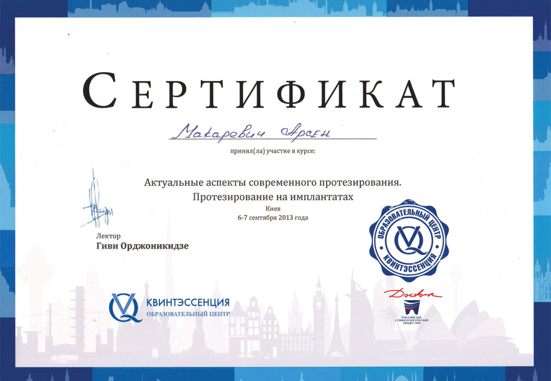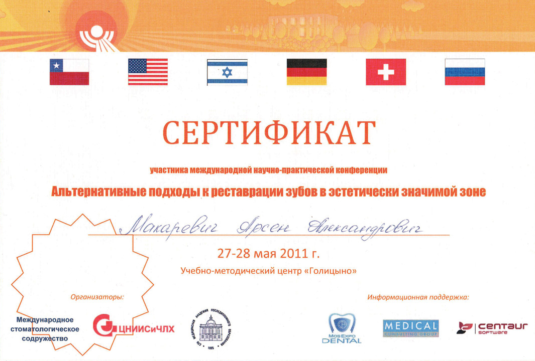 - 2016 Центральная государственная медицинская академия Управления делами Президента РФ. Стоматология ортопедическая