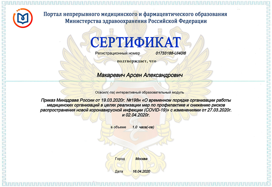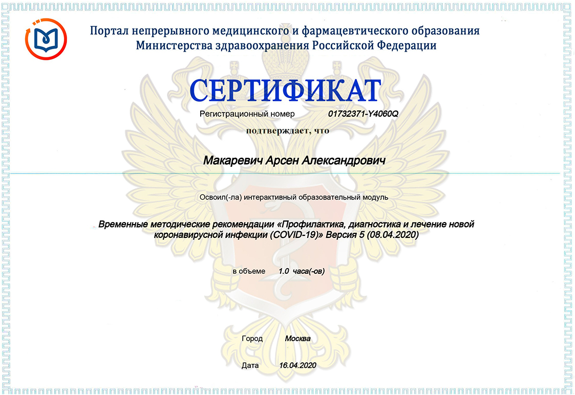 Искренне благодарю медицинский персонал и лично доктора Макаревича Арсена Александровича за внимательное отношение, тщательность и высокий профессионализм!