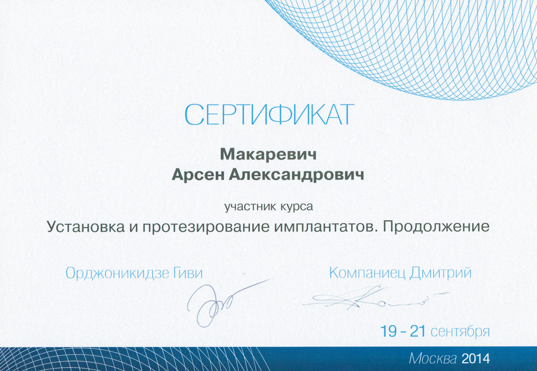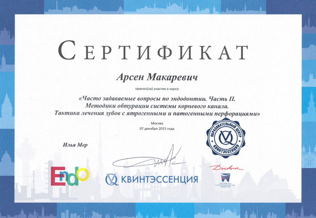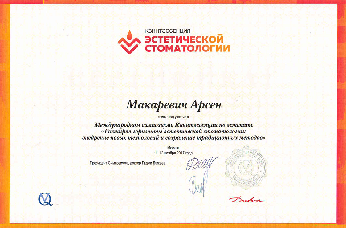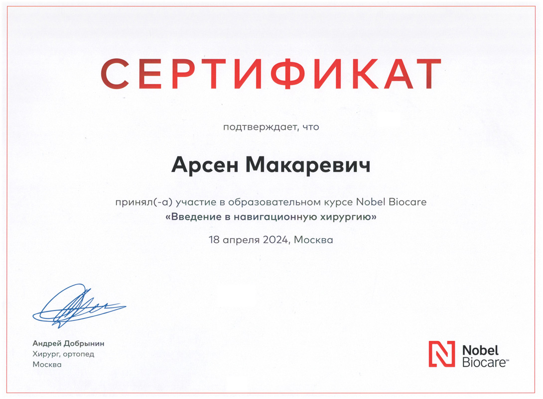 Профессионализм Арсена Александровича заслуживает самых высоких оценок.