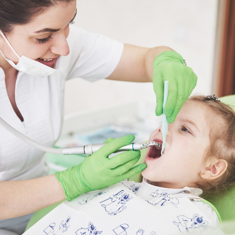 - Обучение правильной гигиене: во время процедуры стоматолог может показать ребенку, как правильно чистить зубы, а также подобрать подходящие зубную щетку и пасту.