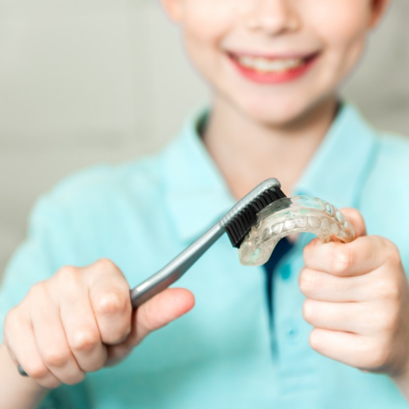 - Удобство. Элайнеры легко снимать и надевать, что позволяет ребенку продолжать наслаждаться любимыми блюдами без ограничений. Также их можно снять для чистки зубов, что упрощает уход за полостью рта.